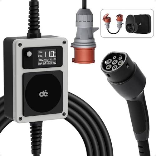 dé Mobile Wallbox 11kW [3-phasig|10m|6-16A] mit Ladekabel, CEE auf Typ 2 mit Stromzähler, EV Ladegerät/Ladestation für Zuhause Model Y/3, ID.3/4/5, MG4, EX30, e-up, e-tron, Zoe und andere EVs