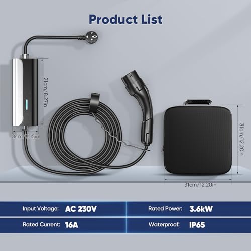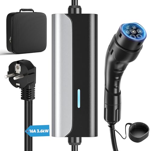 FNRIDS Ladekabel Elektroauto Typ 2 Schuko 3.6KW, 6M EV Ladegerät Typ 2 Ladekabel tragbar,16A Ladekabel Typ 2 Schuko mit LED-Kontrollleuchte,Elektroauto-Ladegeräte,IEC 62196-2 mit Tragetasche