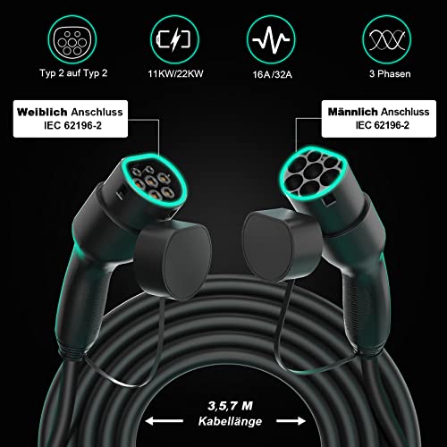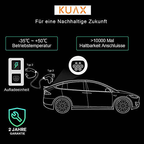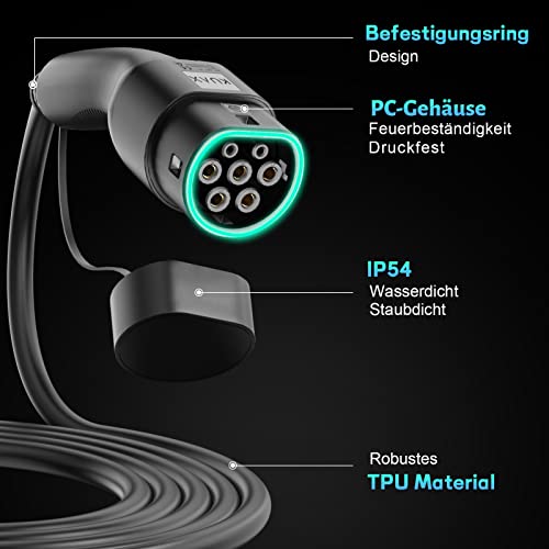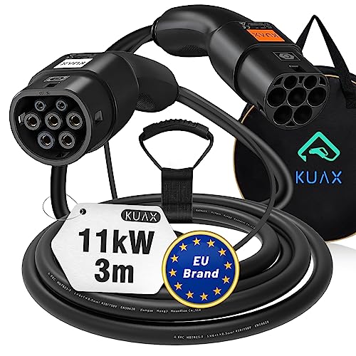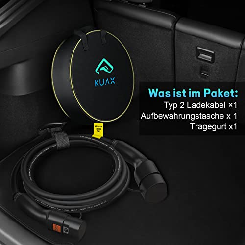 KUAX Typ 2 Ladekabel 11KW 3 Phasen Ladekabel mit 16A, 3M, 11KW, IP54, IEC-62196-2 geeignet für Model S/3/X/Y | e-Golf/e-UP/ID.3 | i3/i8 (Schwarz)