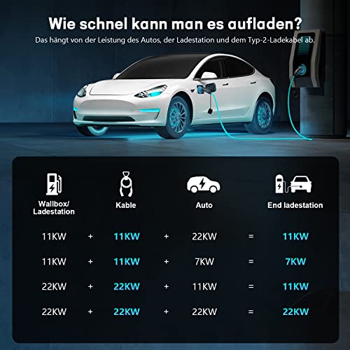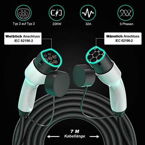 KUAX Typ 2 Ladekabel 22KW 3 Phasen Ladekabel mit 32A, 7M, 22KW, IP54, IEC-62196-2 geeignet für Model S/3/X/Y | e-Golf/e-UP/ID.3 | i3/i8 (Weiß)