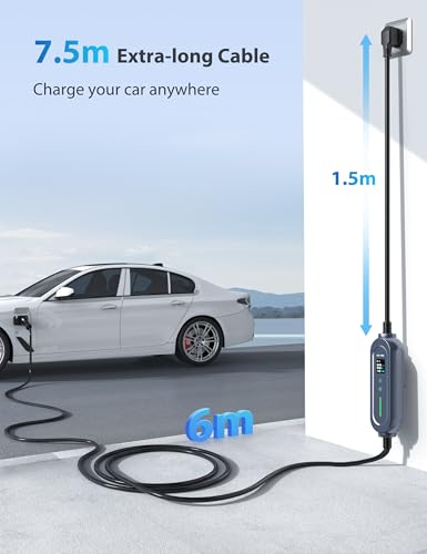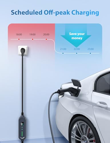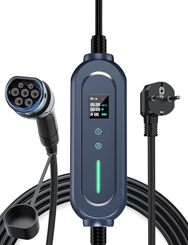 Rengue Typ 2 Ladekabel Schuko 3,68kW 6-16A, EV Ladegerät 7.5M Ladekabel Einstellbare Strom & 0–12H Reservierungszeit für PHEV/EV