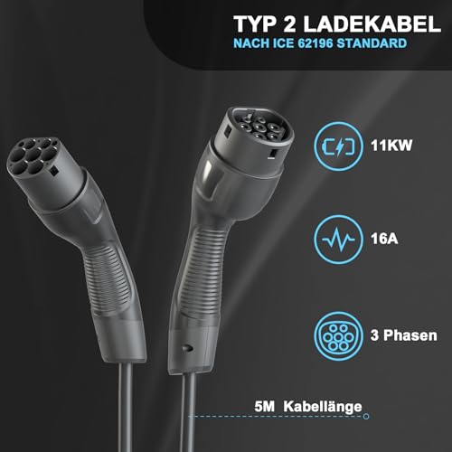 Shineled Typ 2 Ladekabel 11kW 16A 5M, IP66 Elektrofahrzeug Ladekabel,ladekabel e Auto, Modus 3, 3-Phasig, 5 Meter, EV-Ladekabel mit Tragetasche und Mikrofasertuch