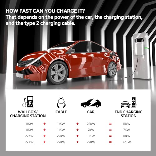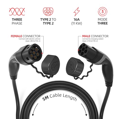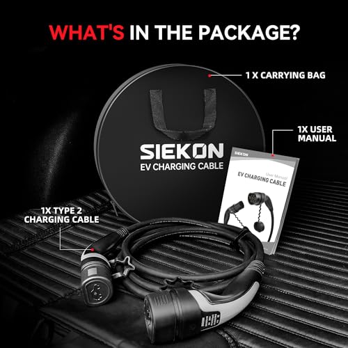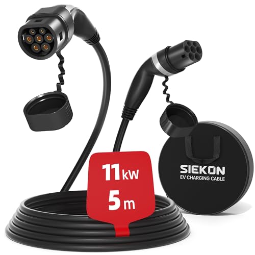 SIEKON Typ 2 Ladekabel für Elektroauto, 11kW 5M 16A 3-Phasig, Modus 3 EV-Ladekabel mit Tragetasche Typ 2 auf Typ 2 für EV & PHEV für Model S/X/Y/3, ID.3, ID.4, ID.5, E-Tron, e-208 usw