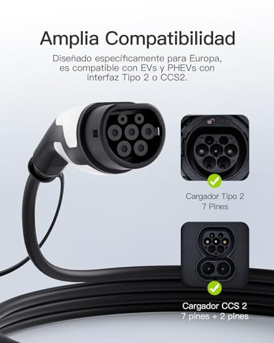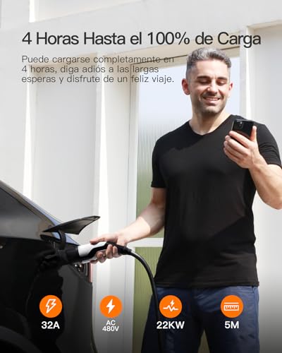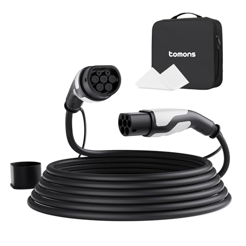 tomons Typ 2 Ladekabel, 22KW 5M 32A 3-Phasig, Ladekabel Elektroauto Typ 2 für EV/PHEV, Typ 2 auf Typ 2 EV Ladekabel mit Tragetasche und Mikrofasertuch für Modell S/X/Y/3, ID.3, ID.4