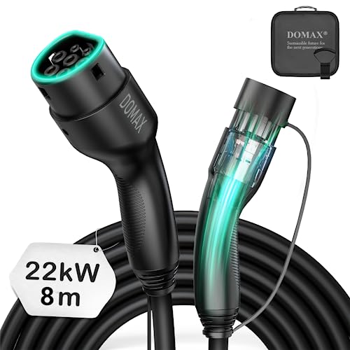 typ2 ladekabel 22kw – DOMAX Elektrofahrzeug 3phasig Ladekabel, 8 Meter, 3 Phasen 32A, IP54, TÜV, Kompatibel mit Tesla Model S/3/X/Y, VW e-Golf/e-UP/ID.3, BMW i3/i8, Mercedes EQC/EQS